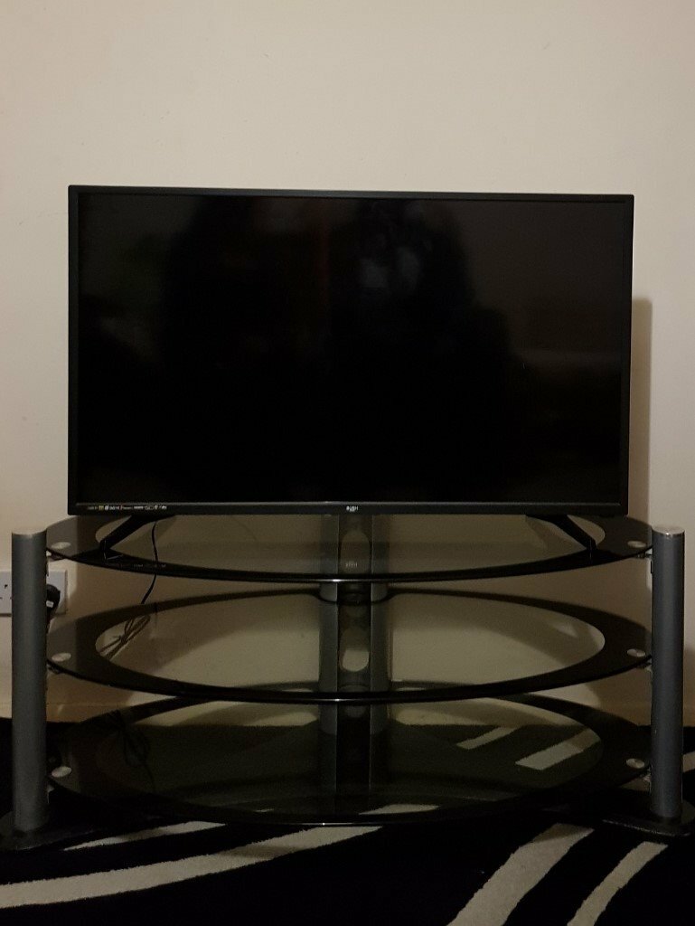 Gheda 3 tier glass tv stand with metal frame swivel mount height adjustable for 32 37 42 47 50 55 65 inch plasma flat or curved screen television, tvs bracket with 3 layers media storage for xbox, ps4. 4.7 out of 5 stars with 3 ratings. Tv stand fits most flat panel tv's up to 50 with a maximum weight of 135lbs.