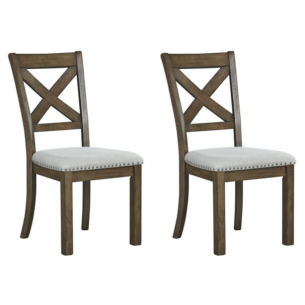 The simple, rustic look of the ashley moriville distressed nutmeg brown 7 piece dining set by ashley furniture ind. Makes the set a stylish transitional centerpiece for your dining room! With a distressed nutmeg finish, antiqued nailhead trim and textured polyester review summary. Ashley moriville 5 piece dining room apg d631 324 key home.