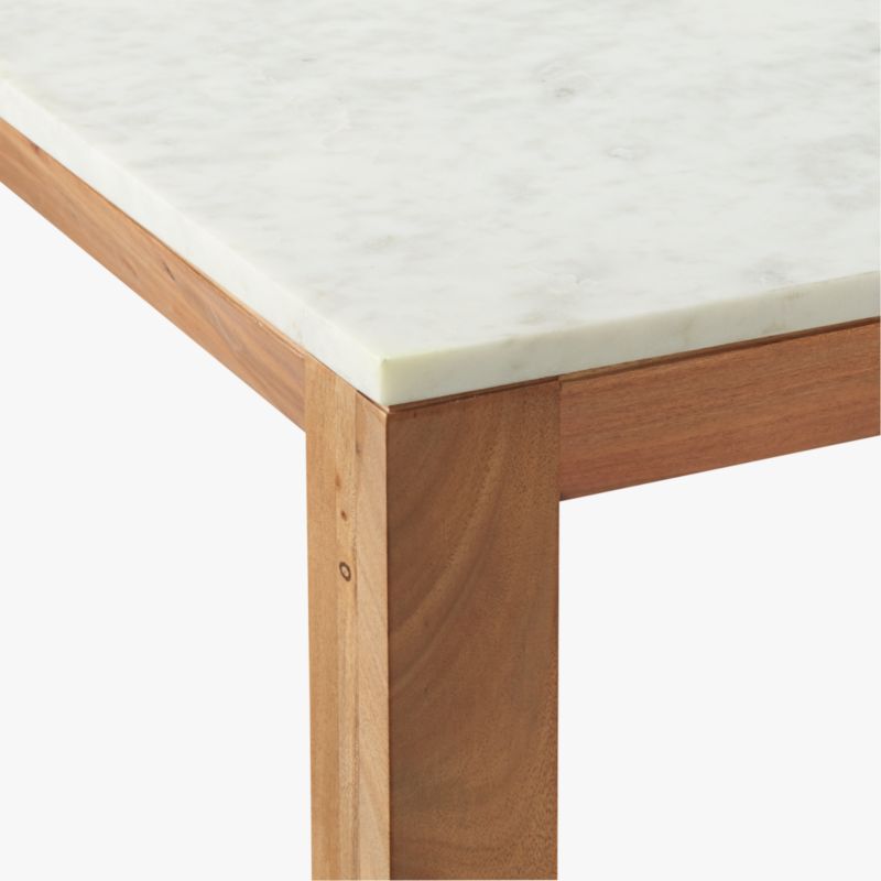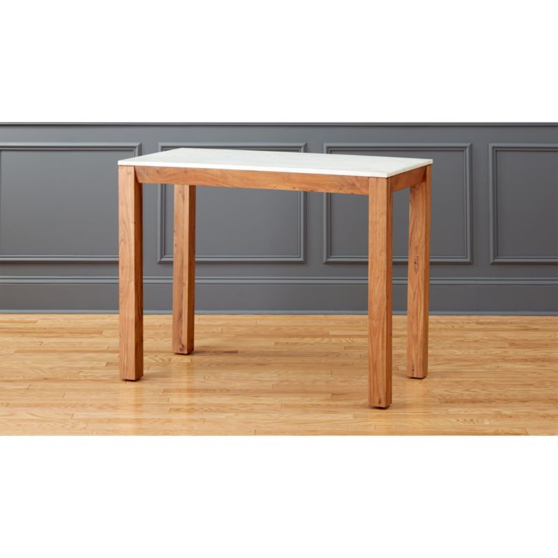 Palate marble high dining table. Cb2 canada inc., 6060 burnside dr., mississauga, on l5t 2t5. Dines or preps at counter height as a kitchen island, or even works as a standing desk. Solid sustainable acacia wood frame with clear lacquer finish.