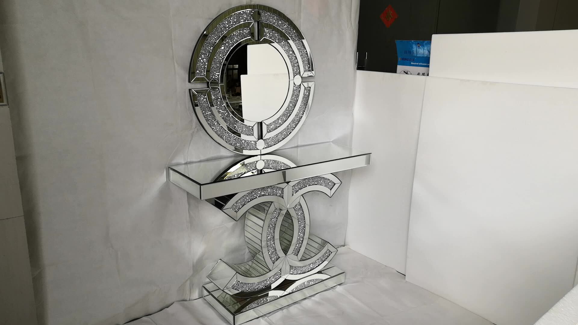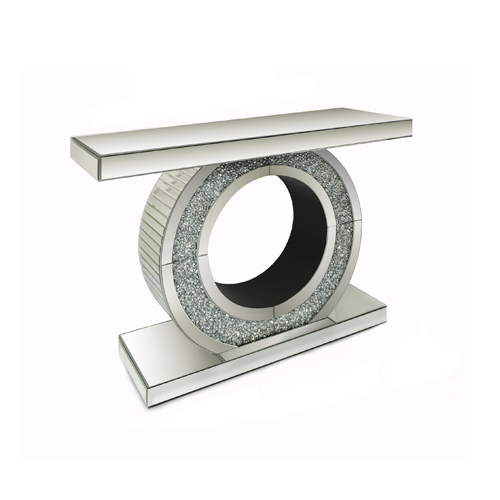 Diamond Mirrored Console Table. Crushed diamond mirrored console table: If you love sparkle this is the collection for you! With its clean lines, this brilliant rectangular occasional table showcases a distinctive style for an intriguing look.