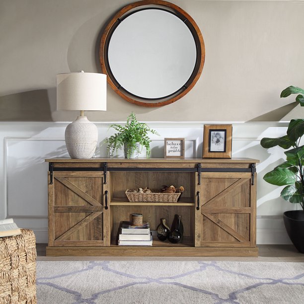 Farmhouse Style Tv Stand. Diy farmhouse sofa table | tv stand with build plans. Rainbow sophia farmhouse sliding barn door tv stand for tvs up to 65, home living room entertainment center, wood storage cabinet with doors and shelves, washed oak. This tv stand has actually been with us from our very first house, so it's least 8 years old now.