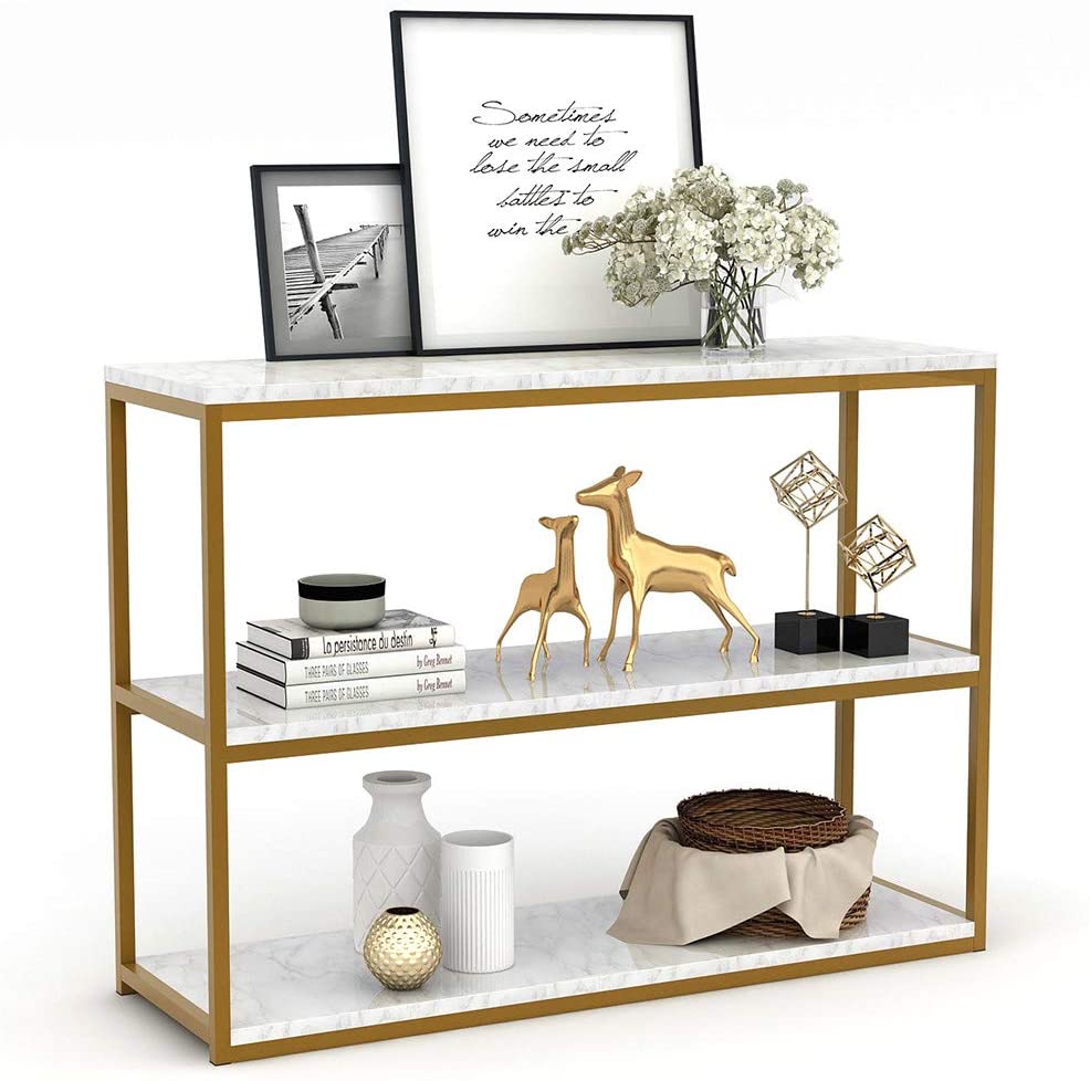 The rectangular white stone marble top floats on top an ample brass plated steel or stainless steel geometric base. A trending modern and sophisticated console table, it is charming and robust. Convenience concepts gold coast julia faux marble top console table. This gold rectangular console table is sure to make a bold statement in your entryway, lobby, living room, or bedroom.