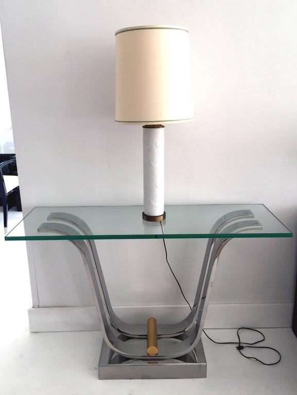 Karl Springer Console Table. Free shipping on many items. Vintage modern brass plate console sofa table glass top after karl springer 1970. Some minor wear to legs.