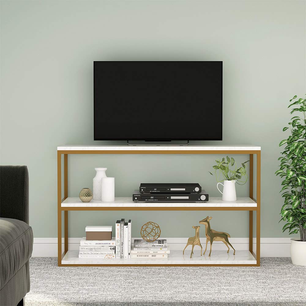 This shelf console is the perfect etagere bookshelf for use as an entryway or accent piece to keep small items within reach and add a touch of elegant decor. A console table, also called a sofa table, brings beauty and practicality in many more locations than simply behind a sofa. For a different look in an airy living room, white marble adds a luxurious touch to the space.