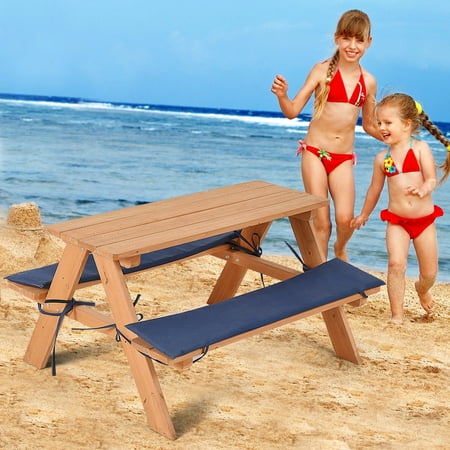 Patio Picnic Bench Table Set. If you want to add extra seating to a dining table, pick a mix of dining chairs and a bench to accommodate a few more guests. Make your dining experience even comfier by adding cushions to the outdoor furniture. Bring an earthy feel to your outdoor space.