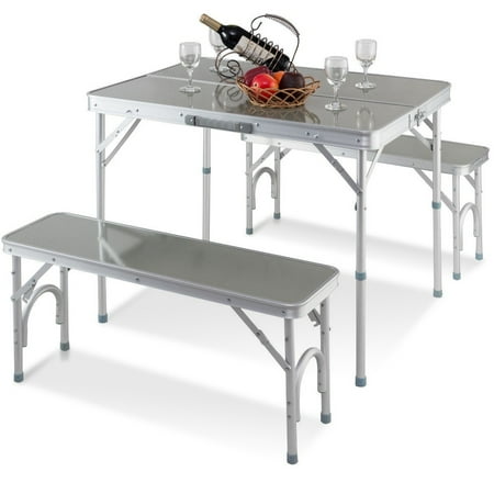 Portable Aluminium Folding Picnic Table. Per seat and 20 lbs. H aluminum folding portable outdoor picnic table (2) 24 in. For the table sturdy formica table framed in aluminum and molded polypropylene seats with a basket weave design.