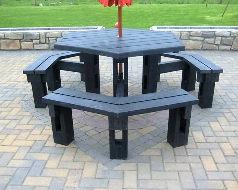 Six Sided Picnic Table. 8' 2 sided picnic table. 6' 2 sided picnic table. 21018 available in tan, forest green and pewter.