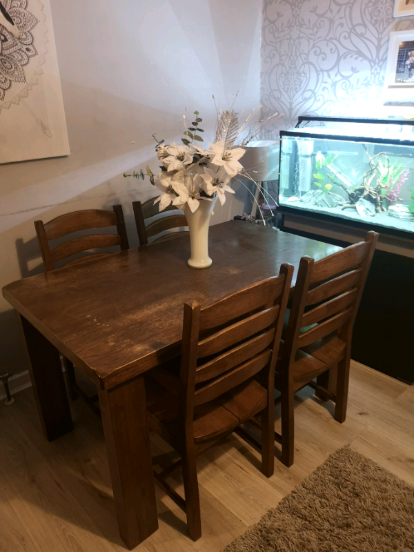 This set makes for a nicely casual dining area with its crisp, straight lines constructed of wood solids and veneers. This set includes everything you need to start planning a new design, including a rectangular table and four matching chairs. Other than that sturdy/solid set. 95 list list price $309.95 $ 309.