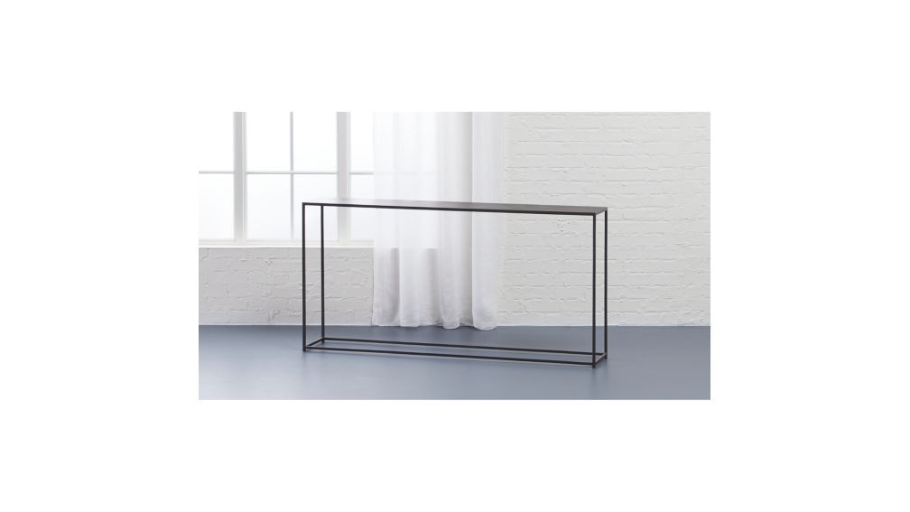 Ultra Slim Console Table. Find the perfect home furnishings at hayneedle, where you can buy online while you explore our room designs and curated looks for tips, ideas & inspiration to help you along the way. It's made with a slim stainless steel frame in a chrome finish, and features a lacquered, engineered wood surface for some mixed material vibes. Deep to reflect your style and inspire your home.