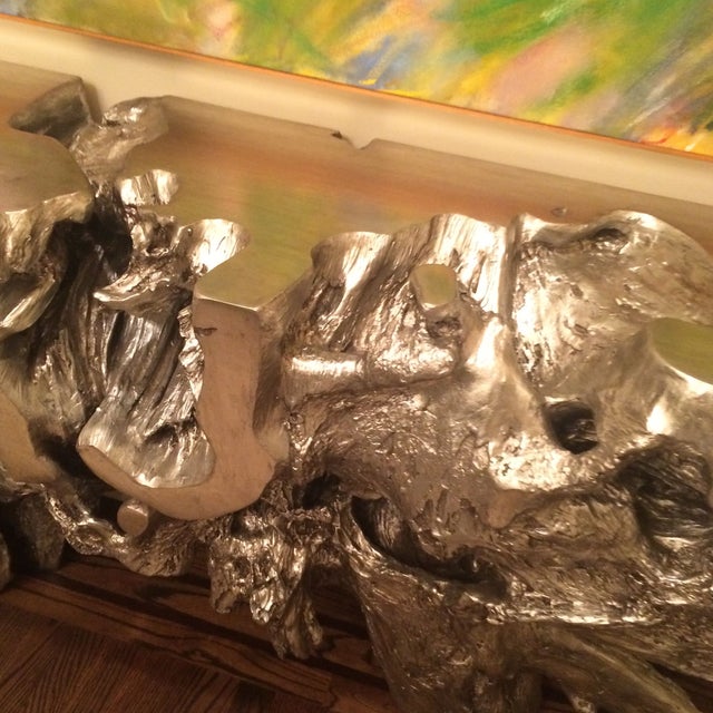Frame is cast resin and fiberglass and constructed with an iron inner. A sixty inch round glass table top completes the table, allowing for easy viewing of the stunning organic display below. The slender design of a console table adds style and flare to your design. The sequoia console table from home retailer z gallerie celebrates the beauty of nature.